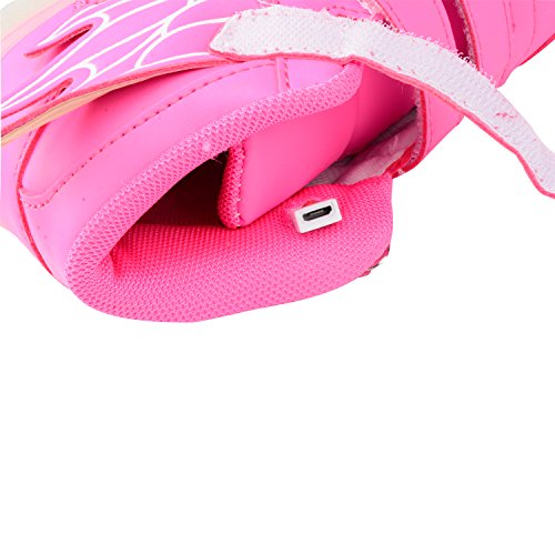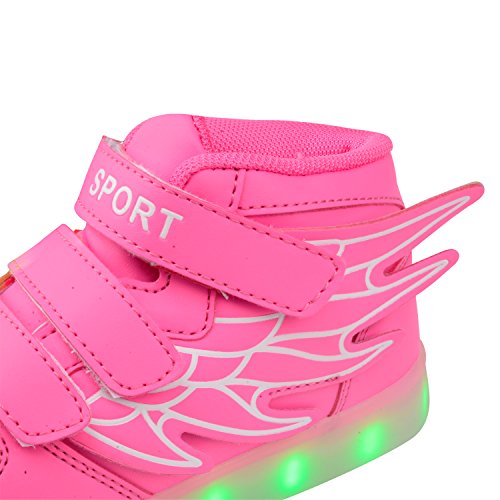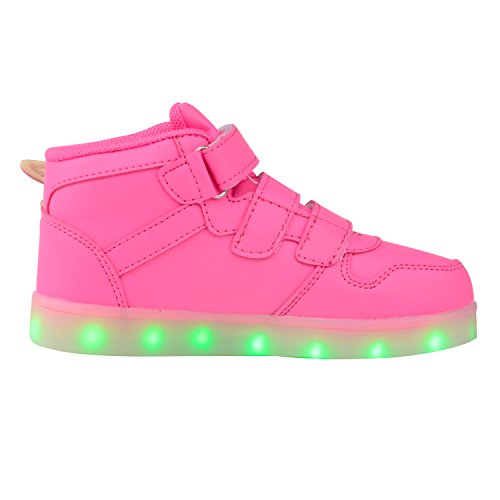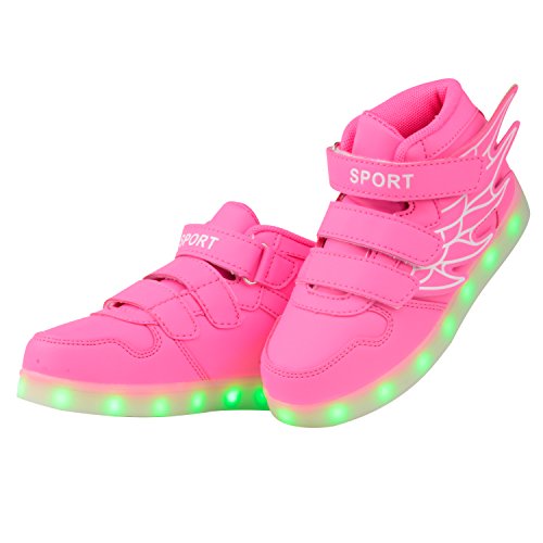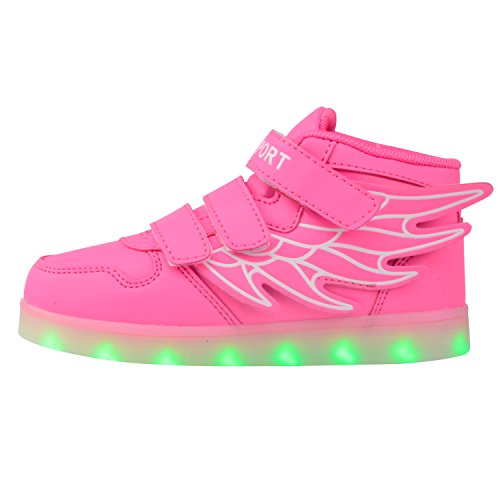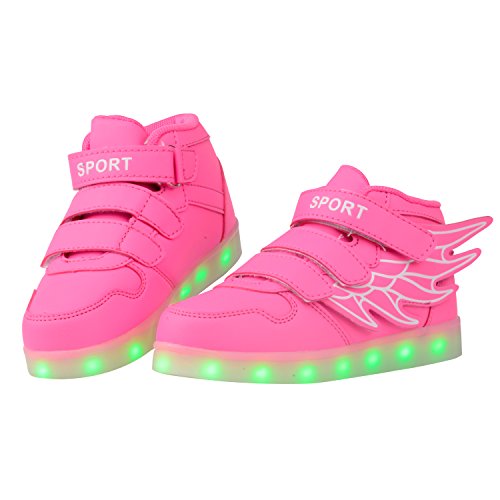Colorful LED light,USB Charge,will send with USB Cable.If the size little bigger,pls understand,child not stay in one size for long time ,they could wear it soon,and you could put a soft insole on the shoe to fix it.Thanks in advacne for your kindness.
