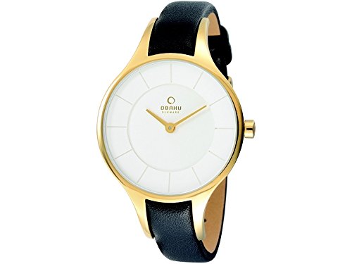 -. Title : Obaku Denmark Womens V165LXGIRB Gold Stainless Steel Case White Dial Black Strap Watch