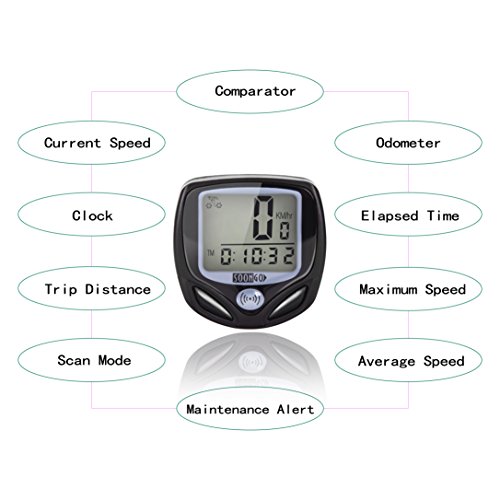 Multi function:cycling record with average speed, maximum speed, current speed, odometer, clock, distance, scan, maintenance alert. You hold all cycling data easily by this wireless bike computer speedometer odometer