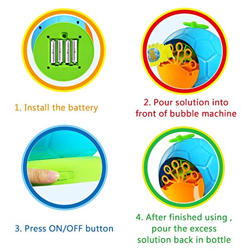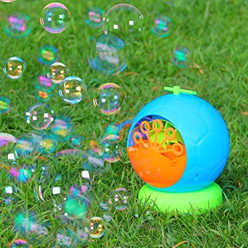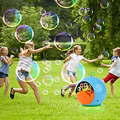 【Oodles of bubbles】-- Automatic bubble machine works really well to blow out countless bubbles and keep your kids entertained. it can produce more than 500 colorful bubble madness per minute. Create whirlpools of fun no matter how big the party.