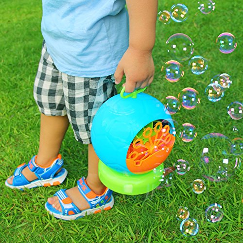 【Easy to Operate】-- Simply pour in bubble solution (not included) and whirl into action. Comes with retractable handle for easy transport, hanging it on a tree, or glugging out bubbles on the go.