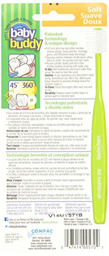 10 times more bristles enables greater removal of plaque, food particles and effectively cleans and massages baby's tongue, teeth and gums, when compared to conventional, one-sided toothbrushes