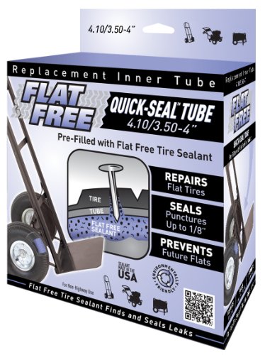 -. Feature : For a 4.10/3.50-4" Tire / Repair your flat tire, seal punctures and prevent future leaks-all with one tube / Sealant will seal tube punctures up to 1/8" / Tube is pre-filled with Flat Free Tire Sealant / Sealant will not free or dry / Repair your flat tire, seal punctures, and prevent future leaks - all with one tube / Sealant is will not free or dry