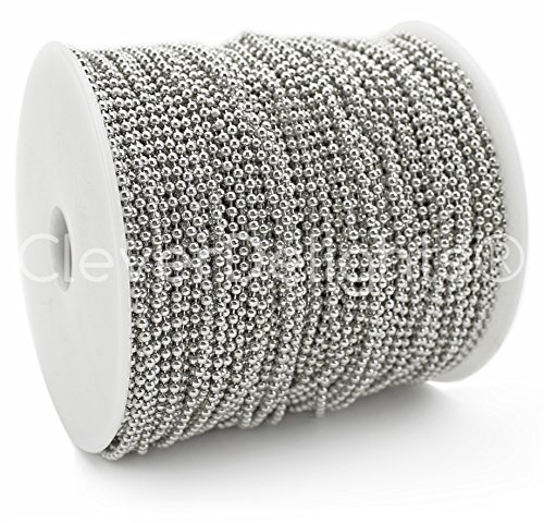 CleverDelights Ball Chain Spool - 330 Feet - 2.0mm Ball - Antique Silver (Platinum) - 100 Meters - Bulk