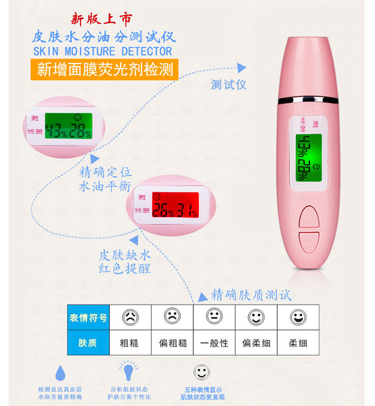 Skin Moisture+Oil+Elasticity+Fluorescent detection