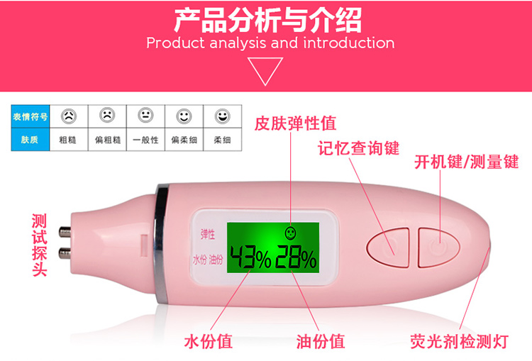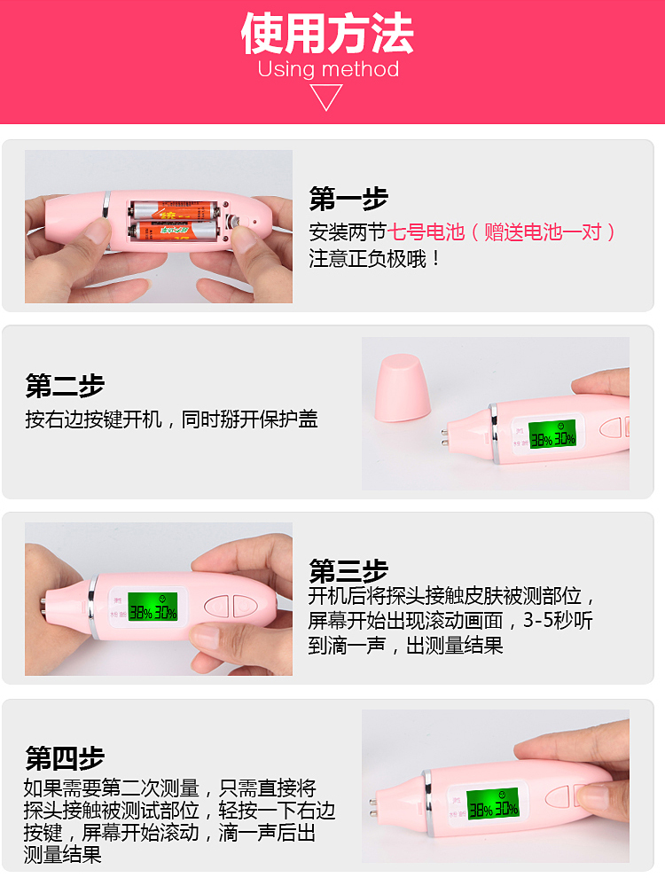Its so easy to use, just turn it on, touch the probe on your skin and see the skin condition with real figure on its u0026nbsp;easy-to-read LCD display. This analyzer lets you know how good or how bad your skin condition is. This pen u0026nbsp;type tool is so compact that you can even place it in your pocket. Moreover, its battery operated, so you can u0026nbsp;carry it anywhere and use it anytime.