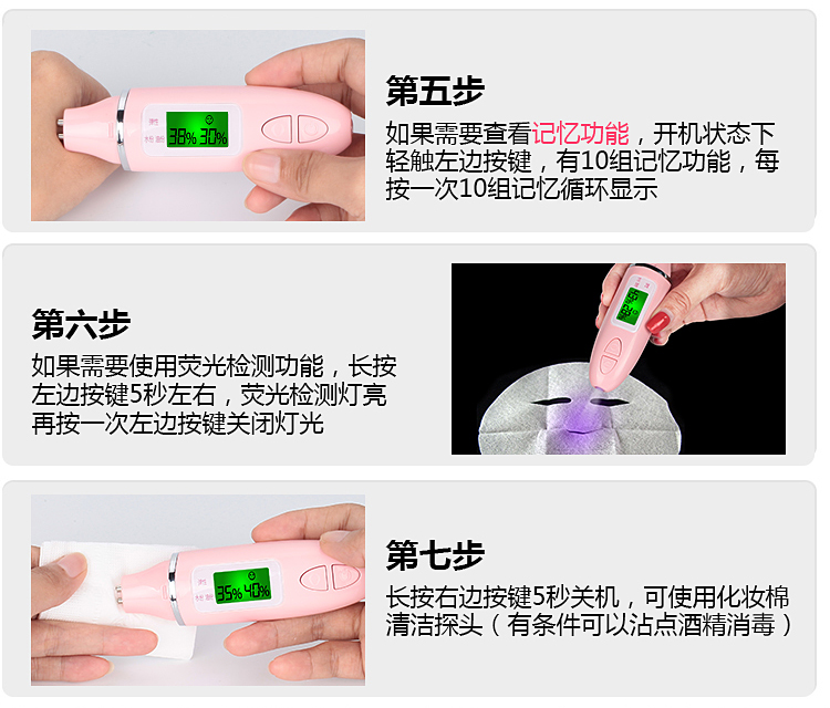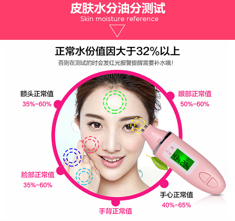 1、测量皮肤的综合营养水份率的体积百分比;数字显示,清晰直观 ;