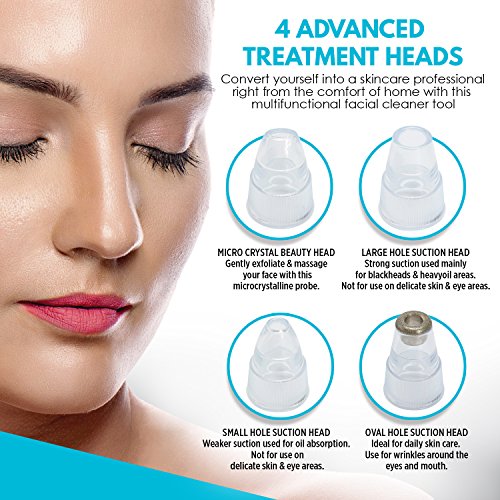✅ 4 ADVANCED TREATMENT HEADS: Convert yourself into a skincare professional right from the comfort of home with this multifunctional facial cleaner tool that brings you four different full-facial suction and cleanser heads that are easy to remove & clean whenever you need to.