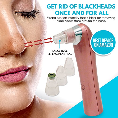 ✅ GET RID OF BLACKHEADS ONCE AND FOR ALL: Ours is the best electronic blackhead sucker device on Amazon and you'll find out why with our large hole replacement head, providing strong suction intensity that is ideal for removing blackheads from around the nose.