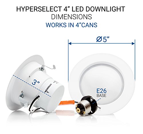 HyperSelect 4 Inch LED Downlight, 9W (65W Equivalent), Retrofit LED Recessed Fixture, 4000K (Daylight Glow), CRI84+, ENERGY STAR Slim Ceiling Light - Great for Bathroom, Kitchen, Office (12 Pack)