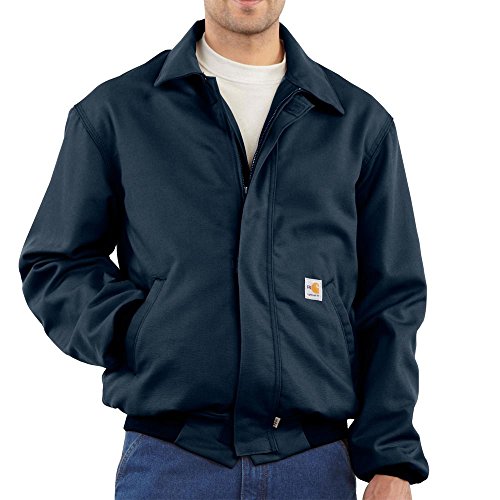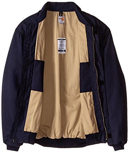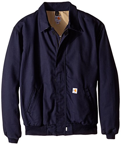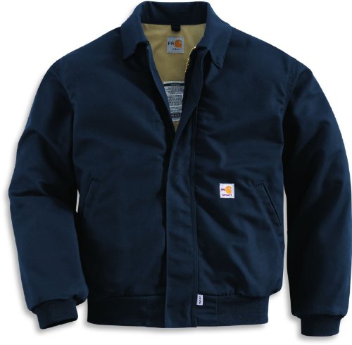 Studio : Carhartt Sportswear - Mens Publisher : Carhartt Sportswear - Mens Binding : Apparel Product Description This no-nonsense jacket is not just what you want, it's what you need. ? 8.5-ounce, FR canvas: 88% cotton/12% high-tenacity nylon ? 6-ounce twill face cloth lining ? Two lower-front pockets ? Two inside patch pockets with FR hook-and loop closures ? Nomex FR rib-knit cuffs and waistband ? Brass front zipper with Nomex FR tape plus inside and outside protective flaps with hook-and-loop closure for electric-arc protection ? Carhartt FR label sewn on front pocket; HRC 2 label sewn on zipper flap ? Meets the performance requirements of NFPA 70E 0
