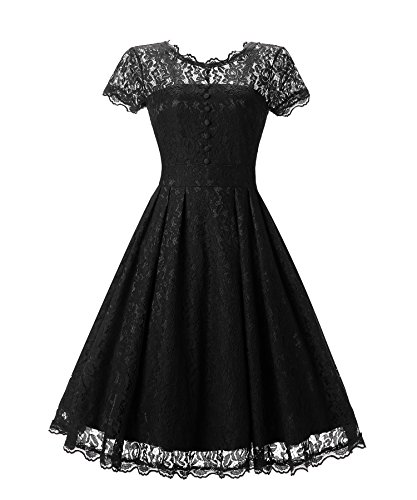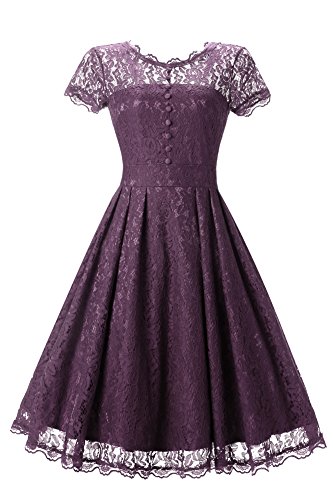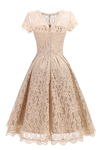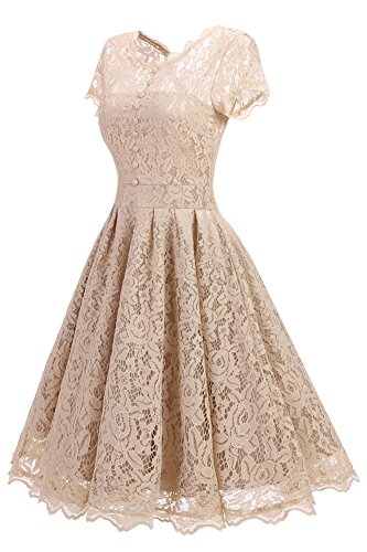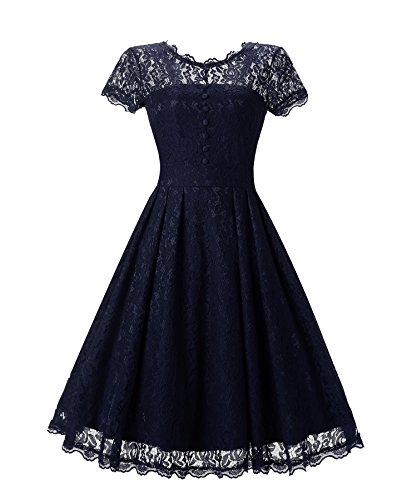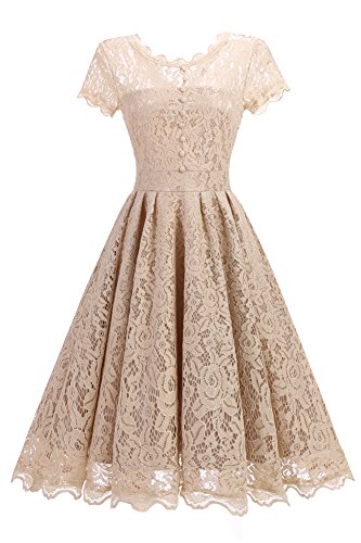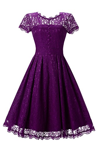 Scoop Neck,Floral Lace Contrast,Cap Sleeve,Soviyas Women's Retro Floral Lace Cap Sleeve Vintage Swing Bridesmaid Dress