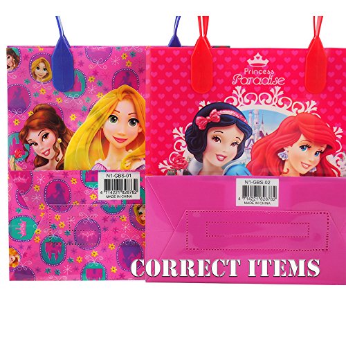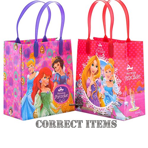 This is a good quality official licensed Disney Princess plastic goody gift bags.There are 1-4 designs in 1 pack for 12 bags.It's reusable bags.The bags are sturdy. You are buying 12 bags of Disney Princess. The size approximately 6.5" x 6.25" x 3.0". We will ship 1 - 4 designs in 1 pack based on the factory AVAILABILITY.