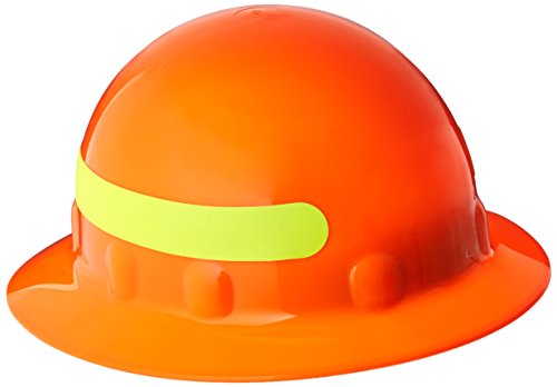 Fibre-Metal 280-E1RW46A009 E-1 Full Brim Hard Hats, 8 Point Ratchet, Strong with Yellow/Green Reference Tape, One Size, Orange