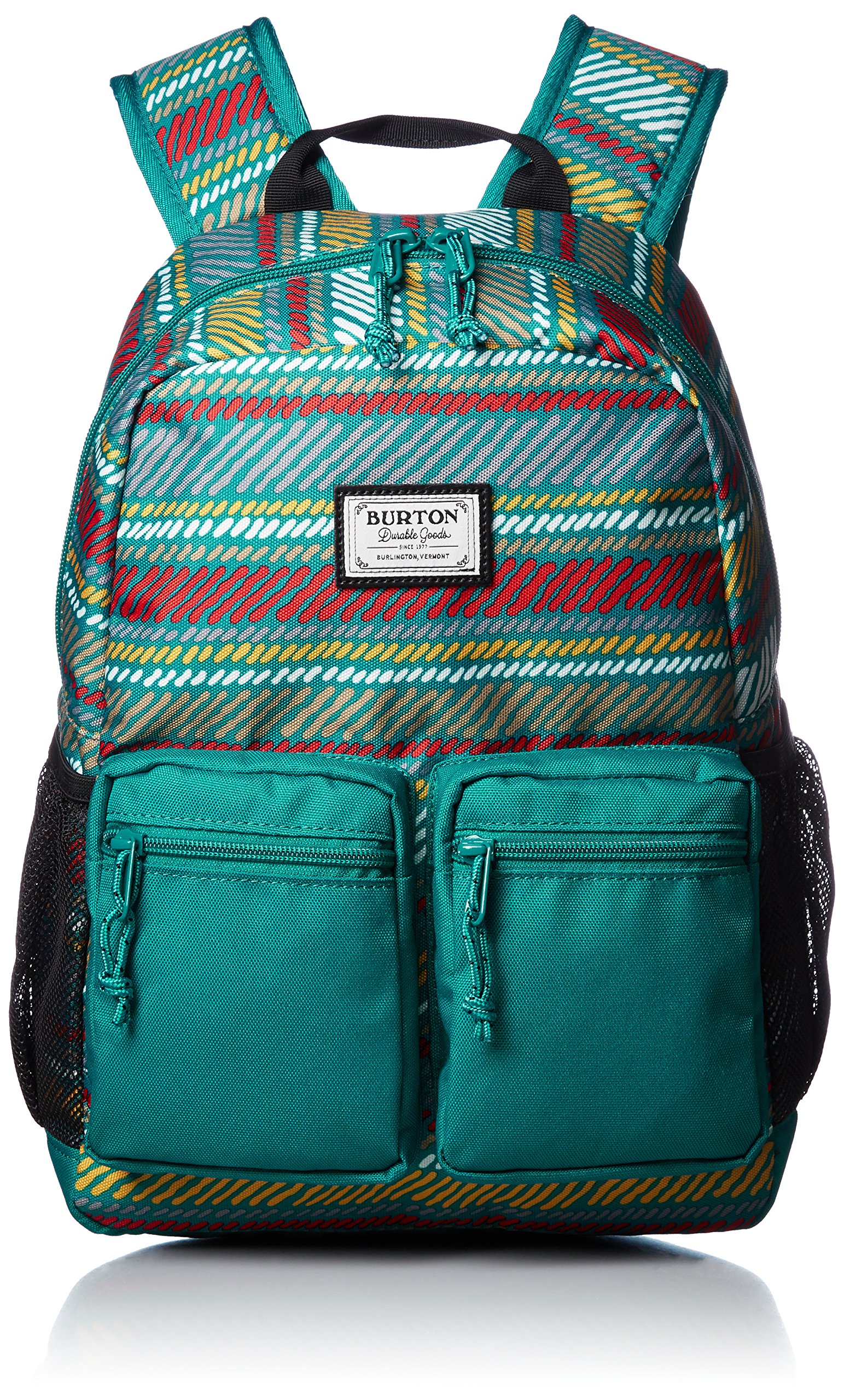· Stretch mesh tablet / magazine sleeve (33cm x 23cm) · front zip pocket · mesh bottle pockets on both sides · inside zip mesh pocket · ID window with name tag · adjustable chest strap · lifetime warranty subject SPRING / SUMMER