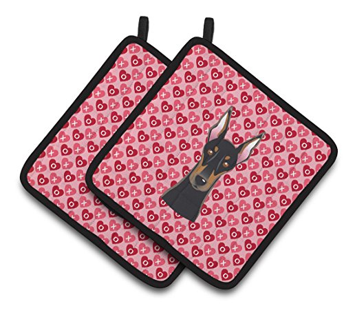 Caroline's Treasures Doberman Pinscher Hearts Pair of Pot Holders, 7.5HX7.5W, Multicolor