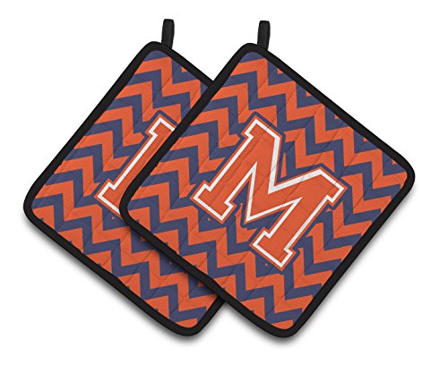 Caroline's Treasures Letter M Chevron Orange & Blue Pair of Pot Holders CJ1042-MPTHD, 7.5HX7.5W, Multicolor
