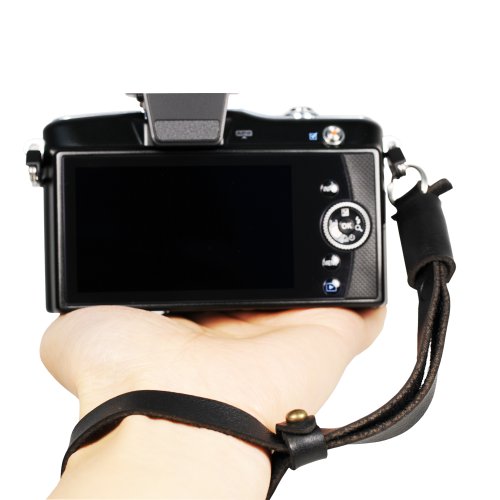 Foto&Tech Black Genuine Leather Adjustable Camera Hand Wrist Strap for Sony NEX Leica Canon Nikon Panasonic Fujifilm Olympus Pentax Samsung Mirrorless compact Cameras