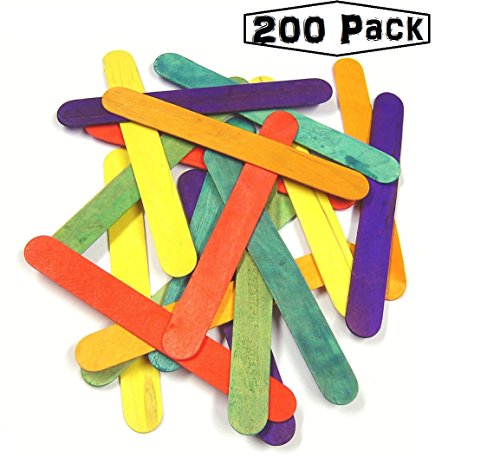 Package includes 200 colorful assorted jumbo colored craft sticks.
