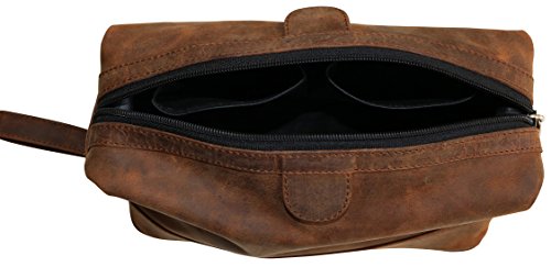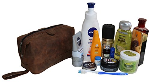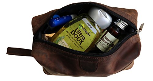 Studio : jaald Publisher : jaald Product Description If you love products that leave very little impact on the environment, the range of leather goods from Jaald will leave you impressed! Crafted by the desert people of Rajasthan, India, Jaald's handmade leather bags and accessories are carefully crafted using traditional techniques and by skilled artisans to ensure absolute perfection. These leather goods are made from goat and buffalo leather using 100% eco-friendly methods, making them completely recyclable. Each of these vintage leather pieces boasts a rich artistry and craftsmanship. Although the goods are handcrafted, they don't compromise on style. Pure Leather Make Vinyl and plastic toiletry organizers pale in comparison to a quality leather counterpart. This Jaald toiletry bag is handcrafted from 100% genuine thick buffalo leather that last through time. The leather, treated using traditional tanning techniques and polished off with vegetable oils, flaunts a soft glow, unique texture and is water resistant. High-quality Construction This leather travel kit sports the front that adds to its looks. It boasts a two-tone finish, contributing to its vintage appeal. Also, this pouch has a carry-on handle at the side that lets you carry it around easily. With one zippered pocket on the outside and one zippered easy-opening pocket on the inside, this leather travel kit has enough room for all your bathroom supplies like brush, paste, shaving cream, toothbrush, razor, cologne and comb. It also has a secret zipper pouch on the inside for storing emergency cash, extra cards and more safely during travel. Use it to keep all your essential bathroom supplies in one place while travelling, or use it at home to store your craft supplies, small tools and other items. It can also be a great gift for kids or students to store their stationery. 0