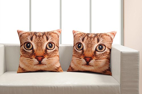 ShalinIndia Digitally Printed Cat Face Cushion Cover Set - 2 Throw Pillow Covers - 100% Cotton Canvas - 18" - Machine Washable - Made in India