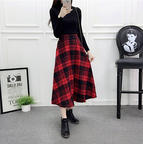 -. Title : K+Mee レディース ロングスカート マキシスカート プリーツスカート フレアスカート ウエストゴム Aライン チェック柄 ラシャ 秋冬 スタイリッシュ エレガント おしゃれ かわいい 人気 レッド ブラック 4サイズ
