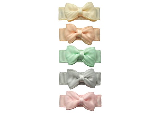 Baby Wisp 5 Tiny Grosgrain Hair Clips Baby Girls Toddlers - Pastel Bows Gift Set