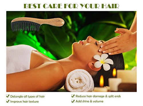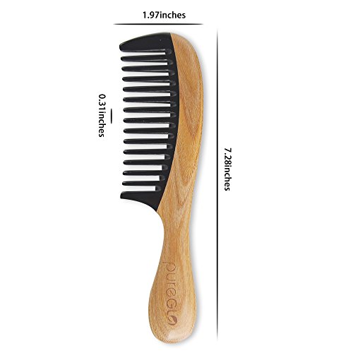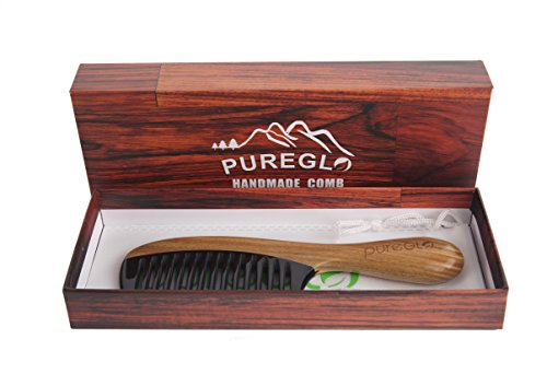 Wide Tooth Hair Comb - pureGLO No Static Detangling Comb - Natural Aroma Green Sandalwood Buffalo Horn Combs for Women, Men and Girls