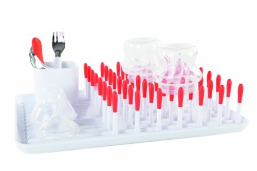 - Feature : Fits at least 8 disassembled baby bottles and their components / Deep walls contain water and corners are shaped to easily pour out excess water / Flexible tines elevate bottles, nipples and breast pump parts to allow for ventilation / Open area with raised ribs provides space for small parts and keeps items away from water at the / Cup attaches to multiple areas of tray and is ideal for utensils, straws and medicine droppers