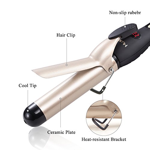Huachi 1-1/4" Curling Iron Ceramic Tourmaline Hair Curler 32mm Auto Shut Off, Hair Curling Wand with Anti-scalding Insulated Tip with Glove and Hair Clips,...