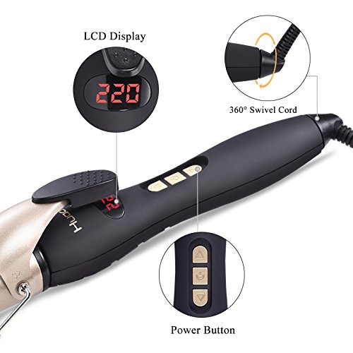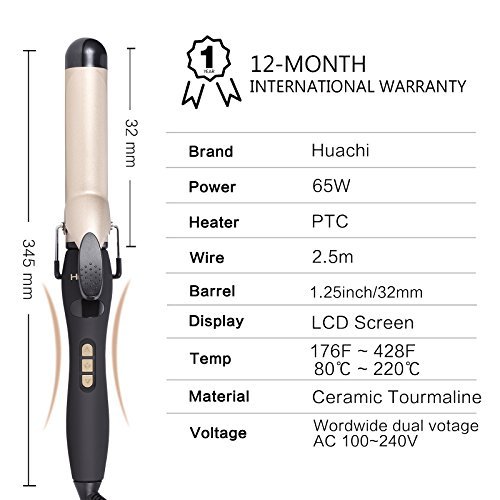 - 220C/428F Salon High Heat - Huachi curling iron provides 28 temperature settings from 176F to 428F for all hair types. It would be more easier for you to find the right temperature suitable for your hair. Tips: Please press the power button for about 3 seconds to switch on. We suggest you use the front half of the heating plate to curl, the styling effect will be better.