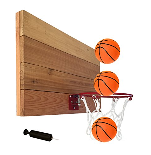 Indoor Basketball Hoop With American Cedar Wood Backboard & Durable Mini 9” Basketball Hoop - Very Cool Way To Practice Basketball & Let Off Steam - Easy Installation