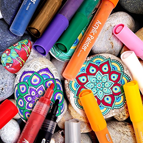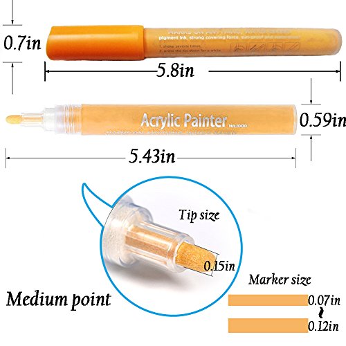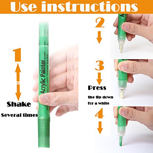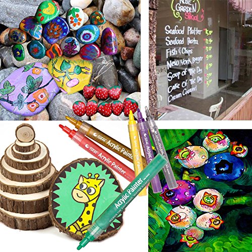 - ▶Widely Use Acrylic Paint Pen- Acrylic paint markers featuring highly pigmented, can be used to add colorful writing and embellishments to virtually any surface, including paper, glass, metal, wood, plastic, stone, mirror, concrete, leather, canvas, fabric, ceramic ornaments, Easter egg, card.