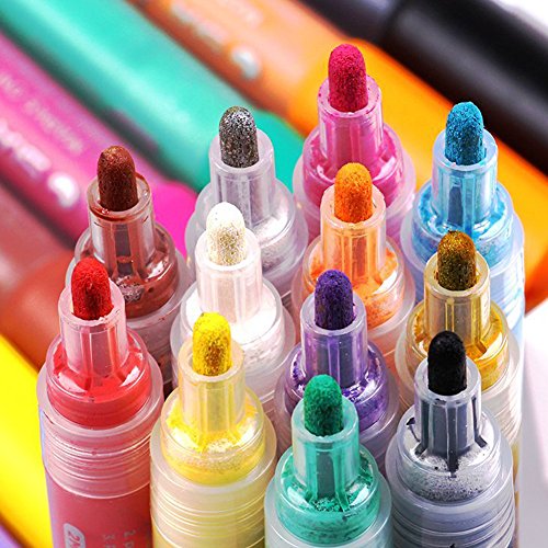 - ▶What You Get- Pack with 12 colors, 18 month warranty. Decorate your clothes, tote bags, and shoes Personalize coasters, coffee mugs, jars and other DIY crafts,You can use these pens to decorate cards, gift bags, scrapbooks, journals, coloring book.