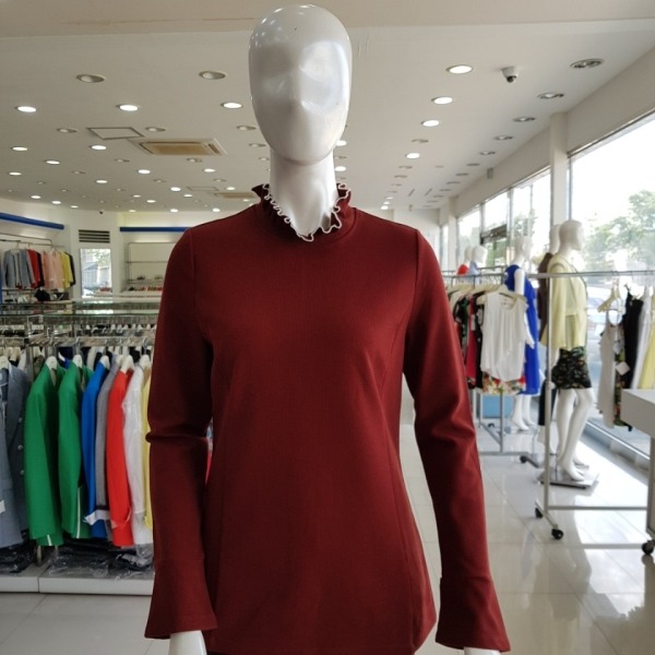 소매 부르종 목자수 포인트 풀오버-JA7F9-WKL260-와인