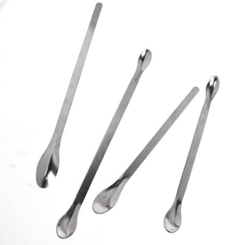 BCP Set of 4 pcs Single Head and Double Head Stainless Steel Pick Scoop Lab Sampling Spoon Lab Spatulas Scoop Kitchen Scoop