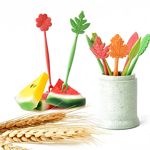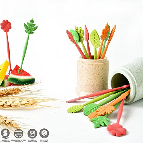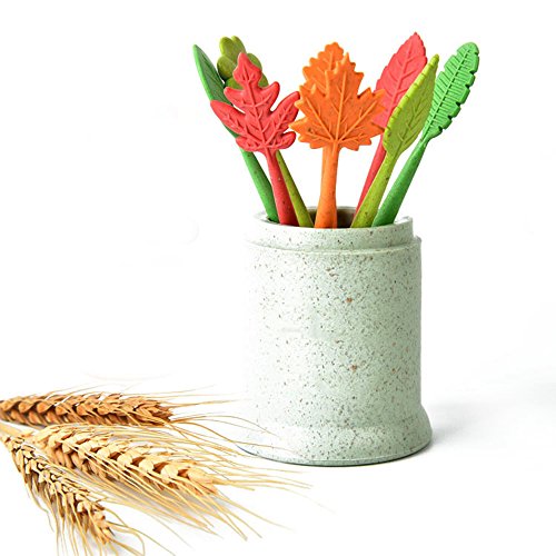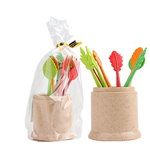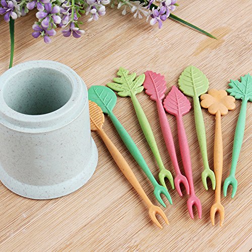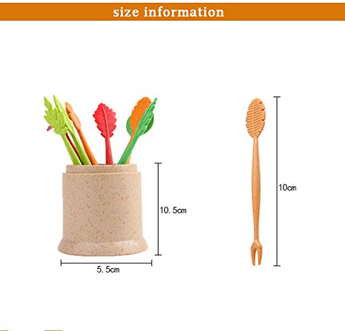 Fruit & Dessert Forks Set of 8,Premium Eco Friendly Biodegradable Natural Wheat Straw Cute Cake/Salad/Vegetable/Food/Appetizer Picks Forks with Holder,Two Prong Forks,Bistro Cocktail Sticks