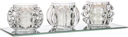 - This Palais Glassware High Quality Set of 3 Crystal Votives On Mirror Tray is made of Glass, The glass used for the candle holder is great quality, it is thick and sturdy. With this beautiful glass votive candle holder you can add a vintage, antique look to any birthday, wedding, special events, and home décor.