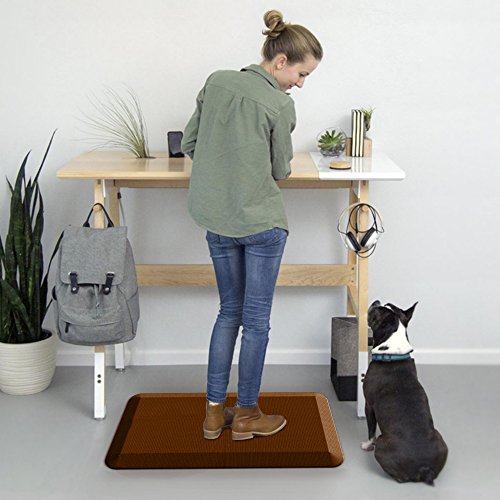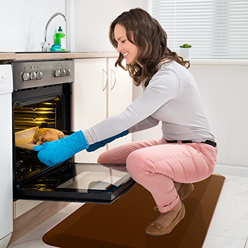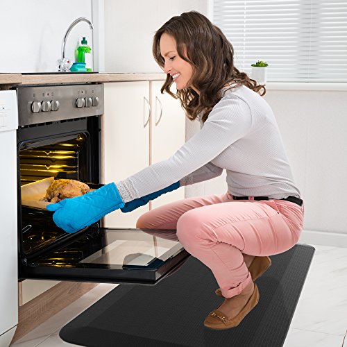• ANTI-FATIGUE - Our floor mats effectively relieve upto 40% pressure on your knees, feet and delicate joints in the legs. Whether you're standing in the kitchen for an hour cooking up your family dinner, or you're at your standing office desk working on your masterpiece, you will feel as if you're on a cloud. Less fatigue = Better Quality work!
