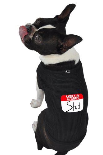 -. Title : Ruff Ruff and Meow Dog Tank Top, Hello My Name Is Stud, Black, Extra-Large