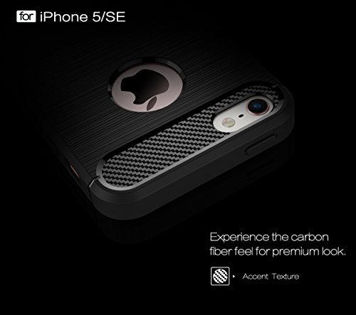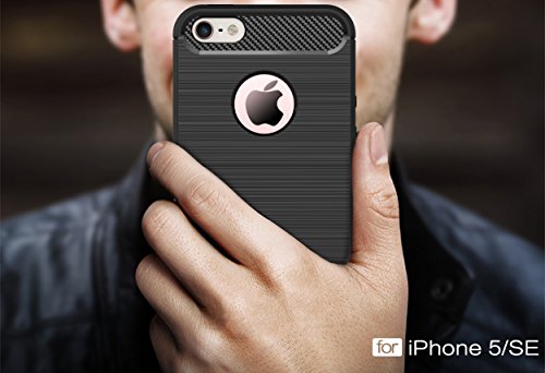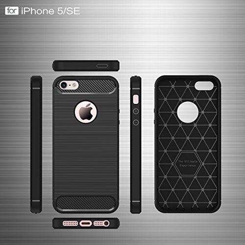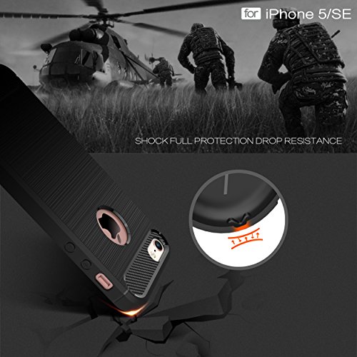 iPhone 5s case,iPhone SE case,iPhone 5 case,DAMONDY Brushed Armor Resilient Shock Absorption Carbon Fiber [Wiredrawing Series][SOFT] Full Protection Phone Case for iPhone 5 5S SE-Black