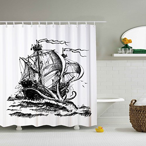 -. Title : Personalized Purple Sailing Big Octopus on the Sea Shower Curtain