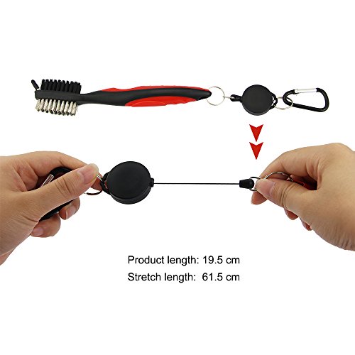 Studio : Kbnian Publisher : Kbnian Binding : Misc. Product Description The brush is beautifully designed in 2 tones, sporting an attractive combination of red and black. small, stiff bristles work well at clearing debris and some grime .improve your golf game.it's also a great golf club cleaner With wire bristles for irons and nylon bristles for woods, this brush delivers the most thorough cleaning of your golf clubs in minutes. Can also be used for cleaning your golf shoes without damaging the leather. This one is ergonomically designed to fit better in the hand. the bristles can successfully pick even the most stubborn dirt, ensuring that your golf clubs always be good performing Our golf brush is durable, quality built,the bristles are firm and clean the grooves well. The deep groove/spike cleaner is sharp and has a nice rubber sleeve to protect it. extends easily and retracts without locking up,comes with a carabiner The retractable tether system helps keep the tool very handy.allowing golfers to attach the brush to their golf bags for easy storage and fast access.so there is no need to remove the tool from your bag. Just grab the brush and pull to clean your club so what are you waiting for? I am sure you must be satisfied with this golf brush after you buying it