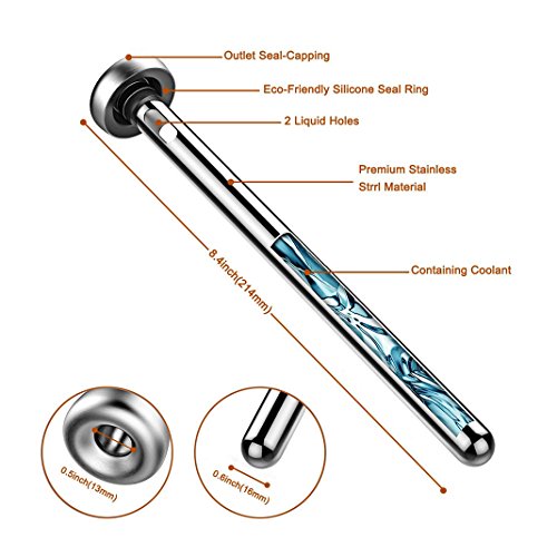 Whisky, Brandy, Rum, Vodka, Gin, cocktails, long and soft drinks or even wine - your reusable stainless steel ice stick will cool your drinks smoothly, complex flavours of your favourite drink by excessive cooling. The ice stick are made of food grade 304 stainless steel and filled with edible alcohol water, allowing them to maintain the perfect serving temperature of your drink longer and more stable than ice or soapstone. What is more, they will never absorb your drink or leave any residues in wine bottle. Simply put this stick in your freezer for at least 2 hours. When you use them, put this stick to the wine bottle. Let's wait a few minutes and enjoy! When finished, rinse the stick with warm water, let dry and store again in the freezer so you are always prepared for your next drink. Store them in the freezer and they are always ready to be used to the party. Our stick always make the perfect gift, the must-have bar and party accessories for every occasion and a special gift for all your loved ones. This stainless steel frozen stick is perfect desined for each wine bottle, the size of each one is 321MM*195MM.