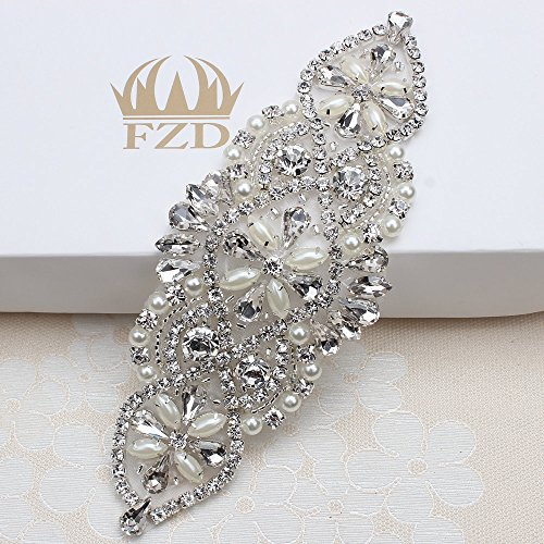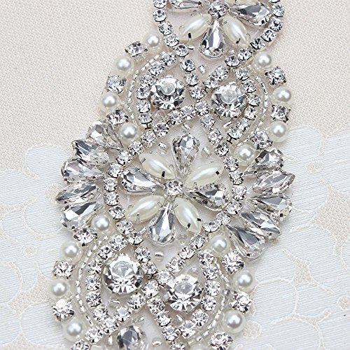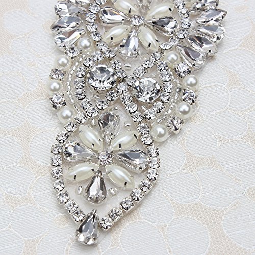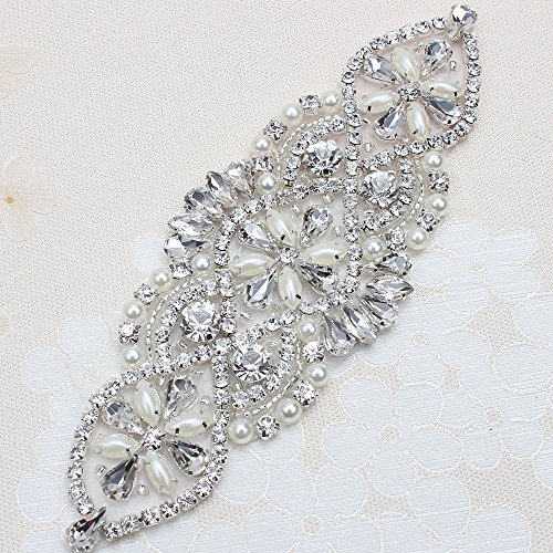 Bridal Belt Rhinestone Applique with Pearls for Wedding Dress Decorative Bags Headbands