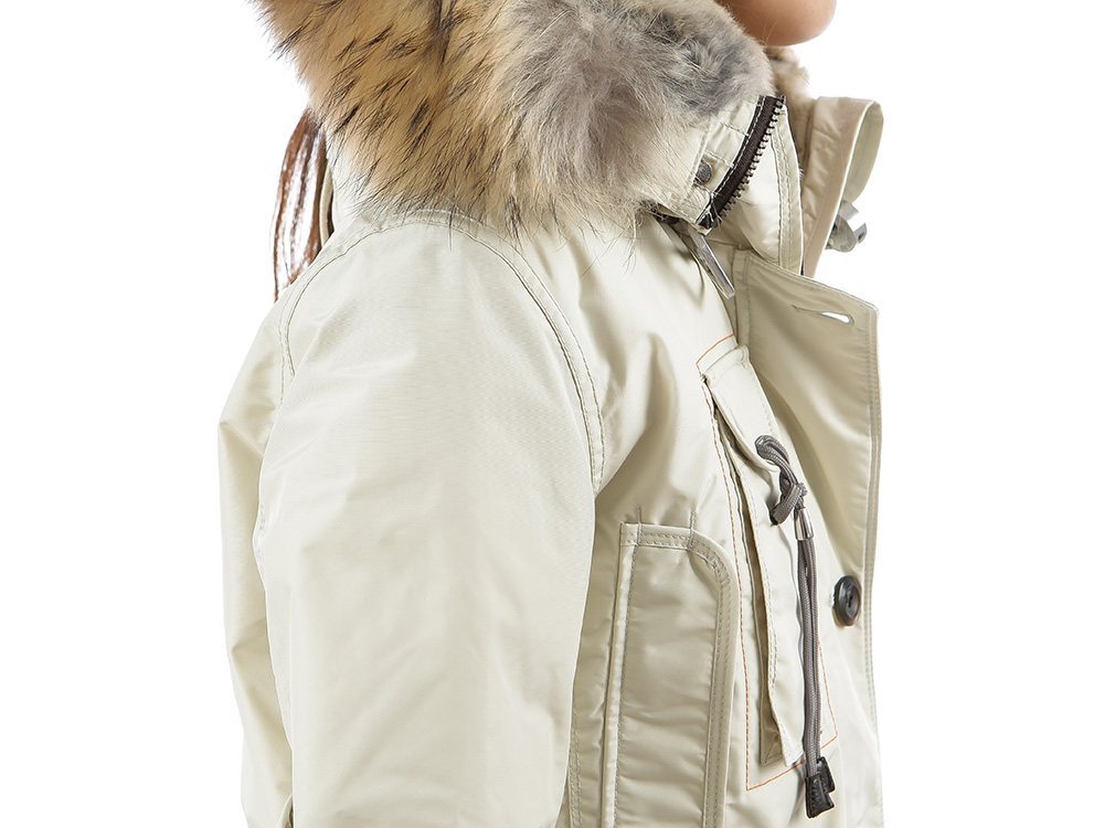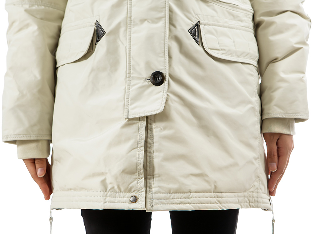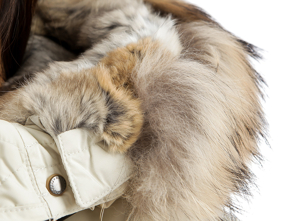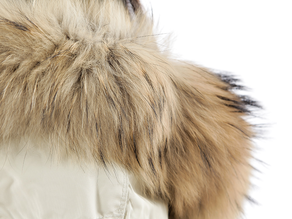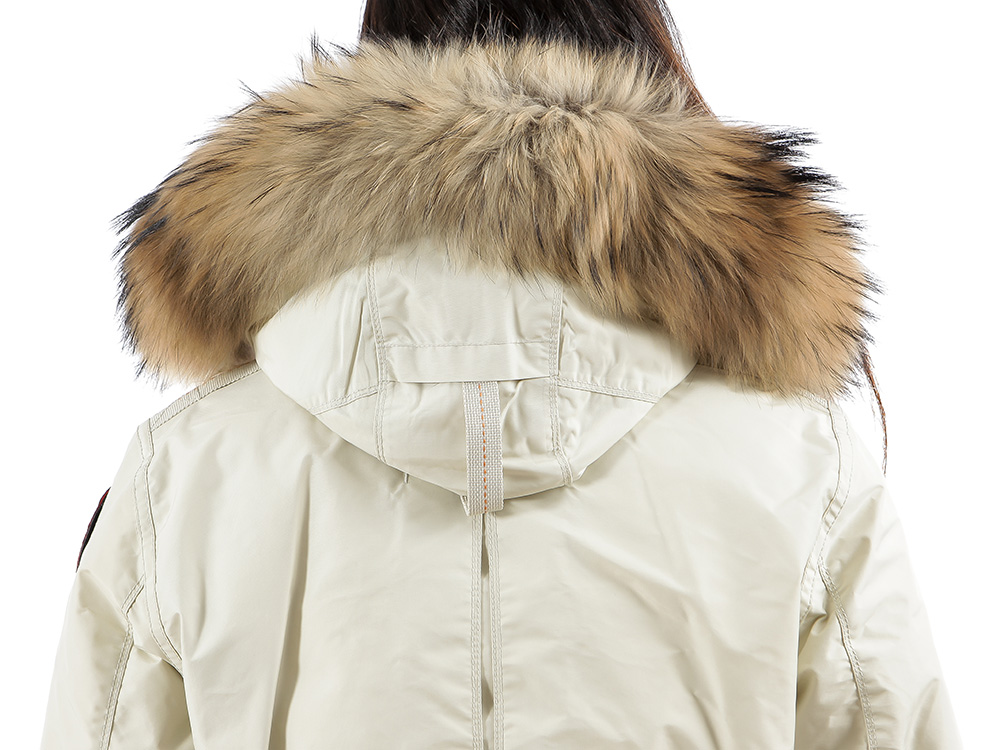 소재나일론 100% / 충전재-솜털 90%, 깃털 10% / 후드-라쿤퍼 100%