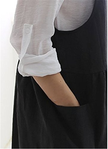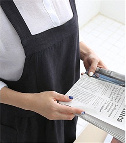 Katoot@ Chef Japanese cloth Style Style Cross-x Shape Natural Linen Cotton Apron (Black)