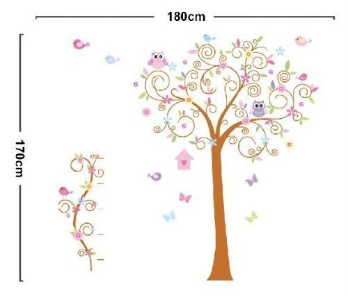 -. Title : BestGrew® Super Large 70.8''x66.9'' Colorful Owl Big Bending Tree Wall Stickers Removable Wall Decal Sticker,Super for Girls and Boys Nursery Baby Room Children's Bedroom
