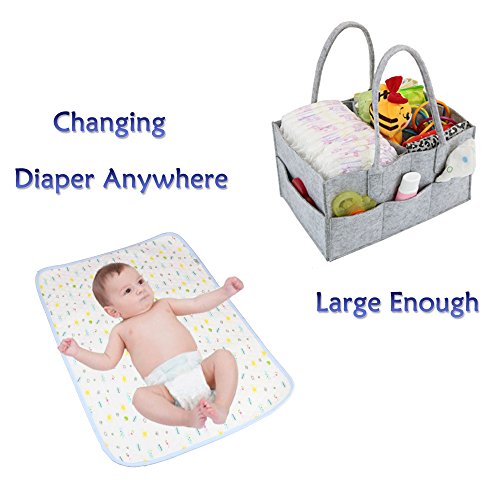 Studio : PFFY Publisher : PFFY Binding : Baby Product Product Description 1. Large Enough Convenient:The diaper caddy which has large inner moveable compartments and 8 exterior pockets organizes all of the baby products: wipes dispenser, diaper changing pad, diapers, clothes, bibs, baby cream, baby towl, baby toys, tissues and more. The baby diaper caddy organizes everything you need in one place well When changing a baby's diaper. It's very convenient to carry the diaper box out, essential diaper caddy for newborn products. 2. The newly improved changing pad is made from high absorbent terry fabric. it has the best grip, wider and longer, it's fitter for a standard changing table. The changing pad has TPU-free waterproof backing preventing to peel off. much thicker, Quilted design of these white toppers ensure that the air is trapped which provides a soft and comfy feel. Protects baby from dirty surfaces, They fold up really small, it's easy to keep them in a diaper bag, Ideal for use on changing pads. 3. High Quality Versatility: The diaper caddy utilizes a lightweight and flexible soft felt that provides rigidity where you need it and long term durability. The diaper caddy is lightweight, but it does a good job of maintaining its shape even while there's nothing in it. It also functions as an organizer for Car Organizer, pet supplies or picnics, etc.. The changing pad can also be an added layer of protection on car seats, highchairs, bouncers and rockers. 4. Clearner and Healthier: The diaper caddy and changing pad could be washed with banister brush by hand.(Tips: No Hot Water, No Washing Machine). they are easy to wash, keeping clear is very importent for baby's health. 0