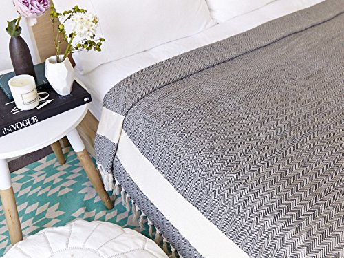 Eshma Mardini Turkish Cotton Quilt Bed Spread Blanket Bed Cover for All Season 56" x 81" - Black